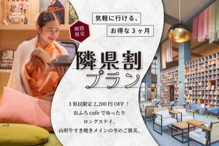 (チェックインの際、運転免許証など、対象の県に在住している方の住所が確認できる物をご提示ください。)※山形県・宮城県・福島県の方がいらっしゃらない場合はプラン対象外となります。グループの中にお一人でも山形県・宮城県・福島県在住の方がいらっしゃれば、ご予約いただけます。また自社サイトでご予約いただくと他OTAサイトより3,300円お得にお泊りいただけます。ぜひこの機会にご利用ください!